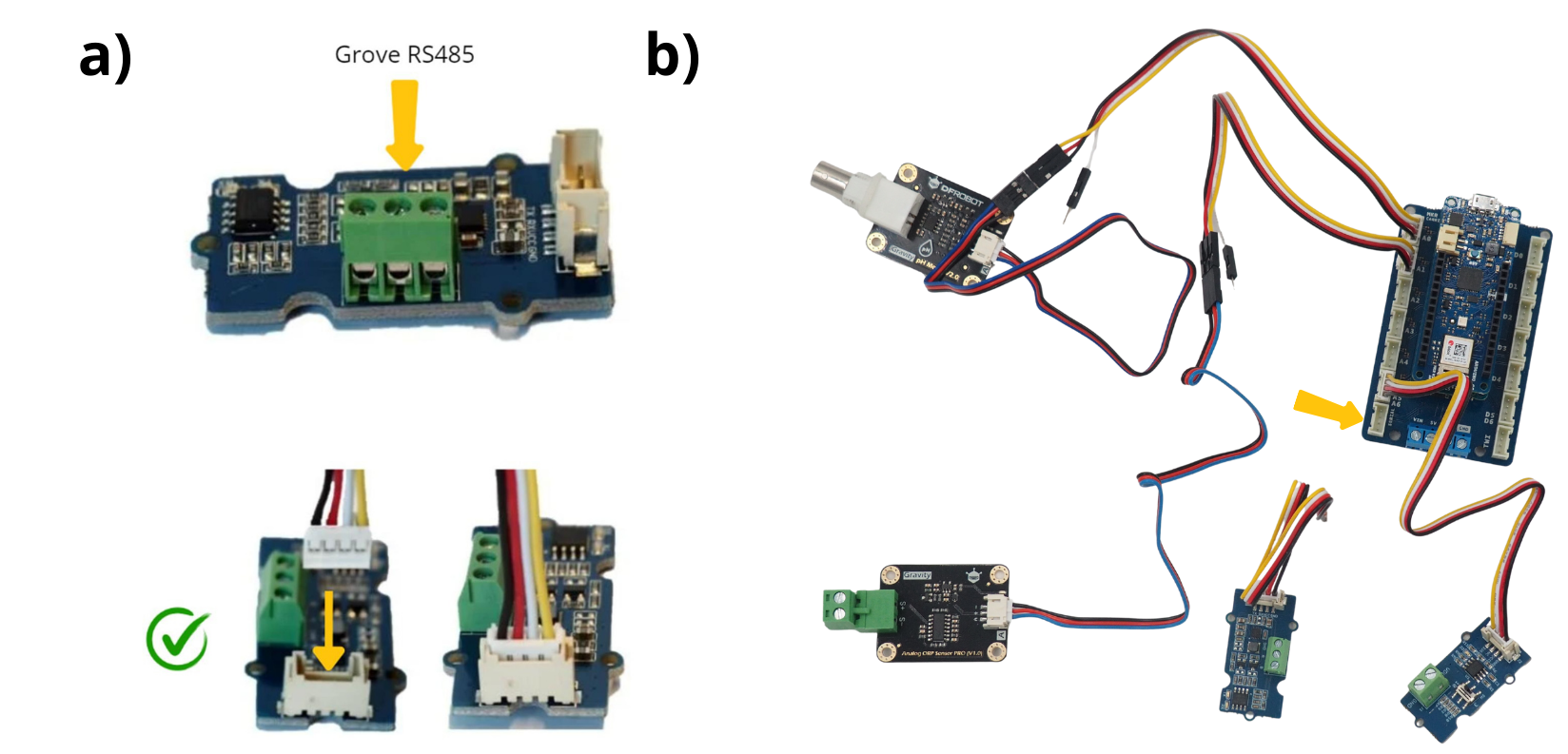 Ces deux capteurs utilisent le procédé de communication RS485. Aussi ils seront tous deux connectés au module associé.