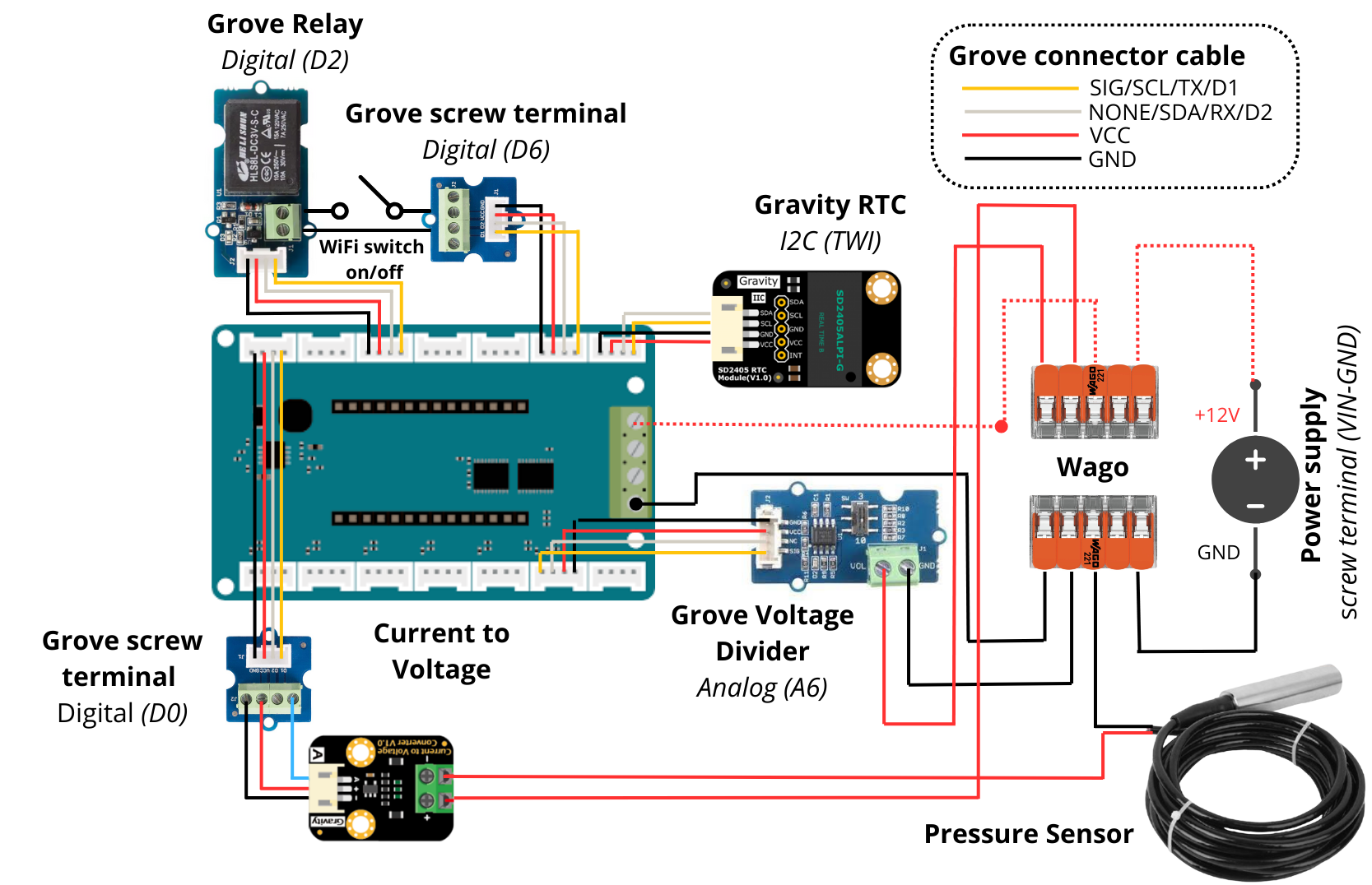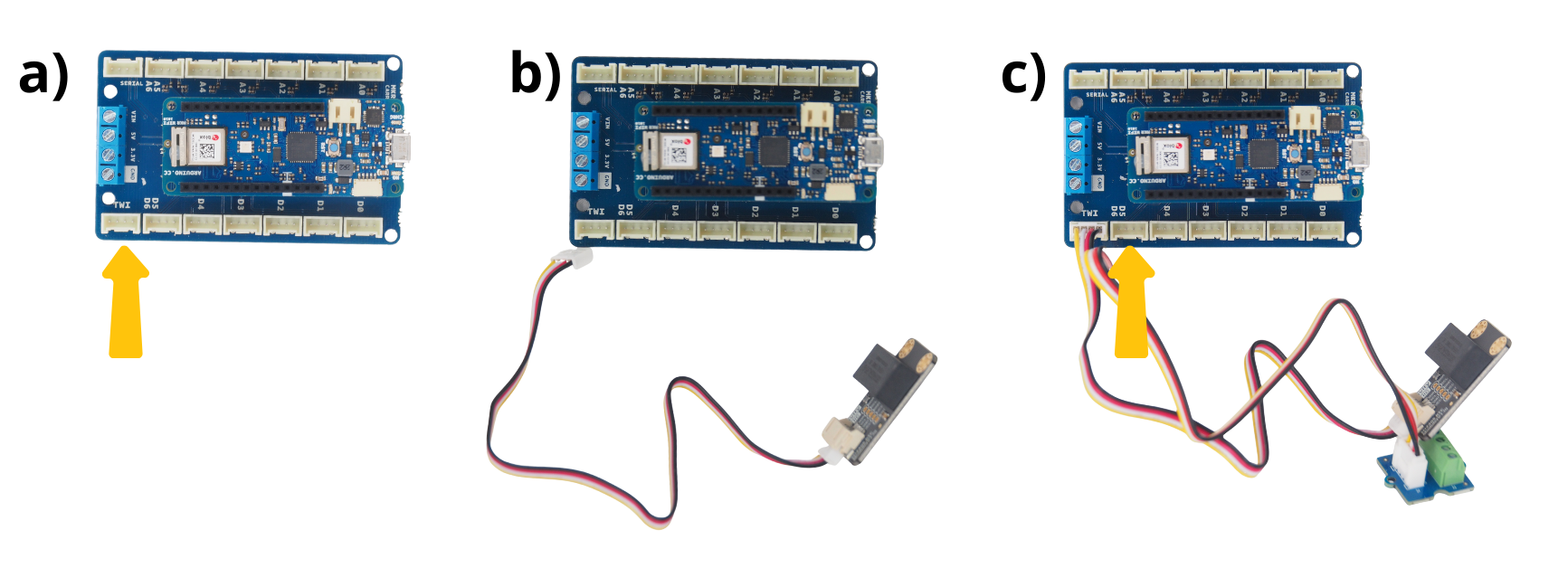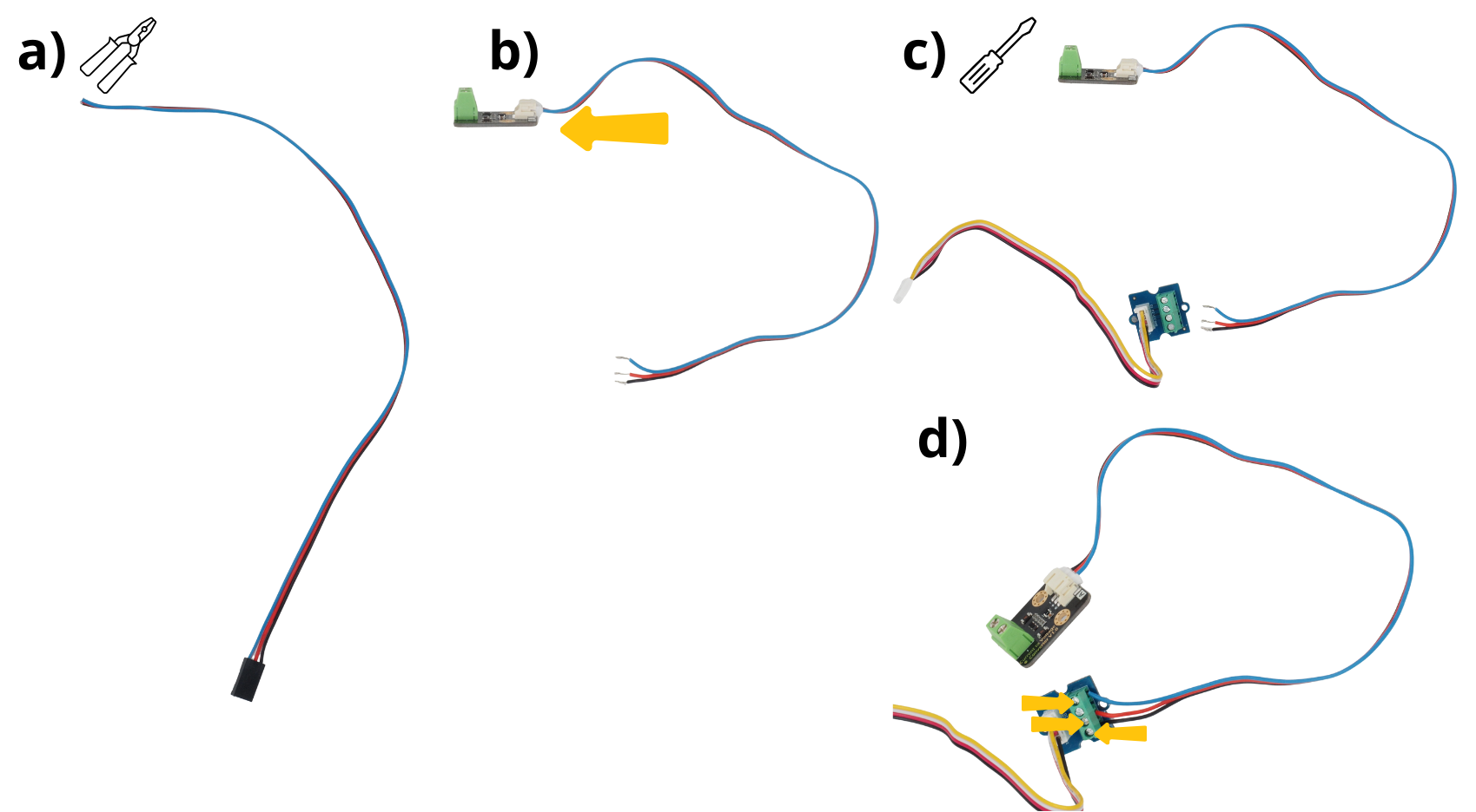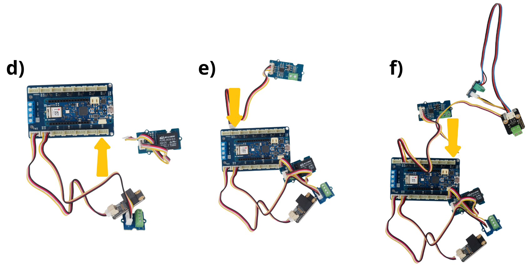 Prendre les modules Grove Screw Terminal et brancher les câbles Grove Connector fourni avec.