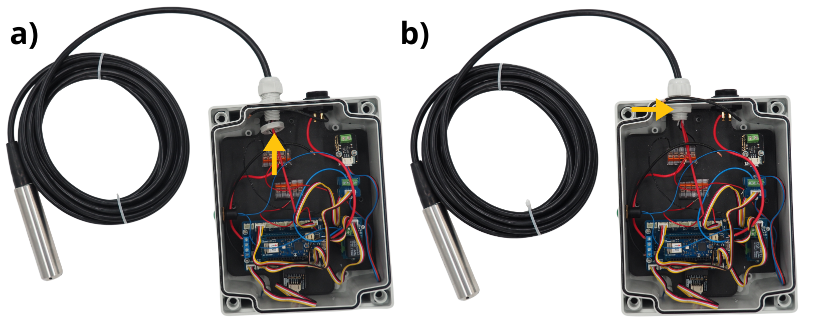 Serrer le presse étoupe afin de verrouiller le câble du capteur, et de garantir l’étanchéité du boîtier.
