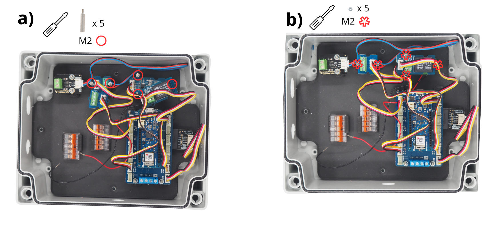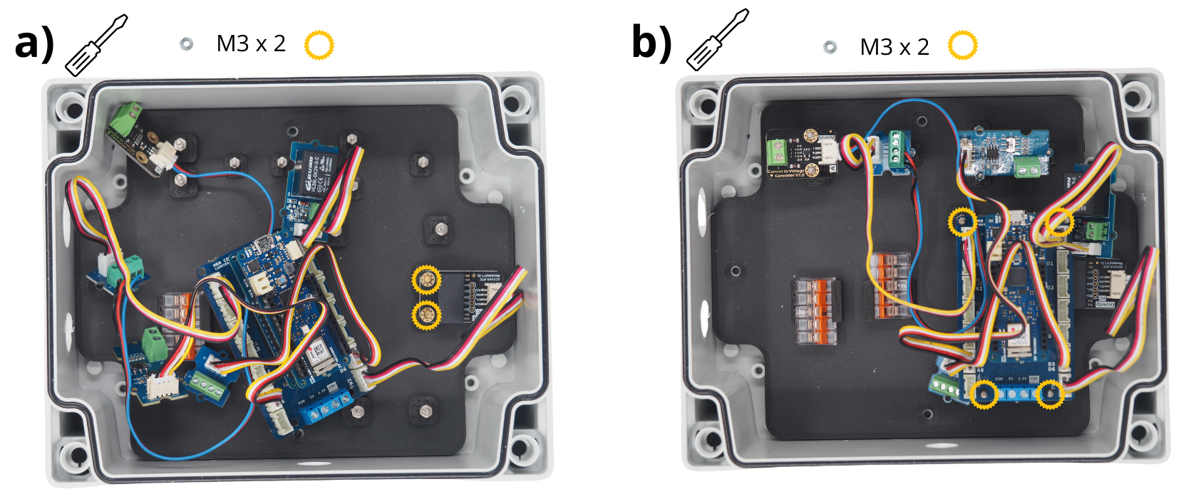 Fixer à l’aide d’entretoises M2 le module Grove Voltage Divider ainsi que le module Grove Screw Terminal.