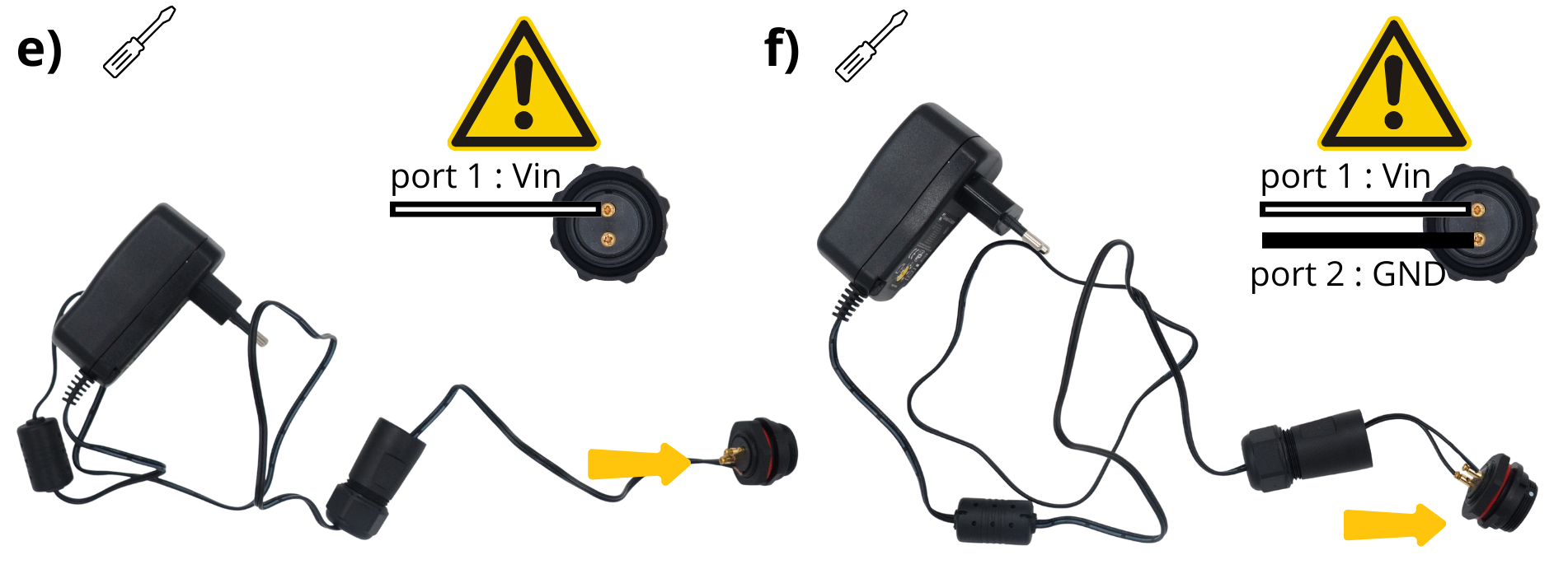 Afin d’éviter tout court-circuit entre le câble GND (Noir) et le câble VIN (Rouge), ajouter une gaine thermorétractable.