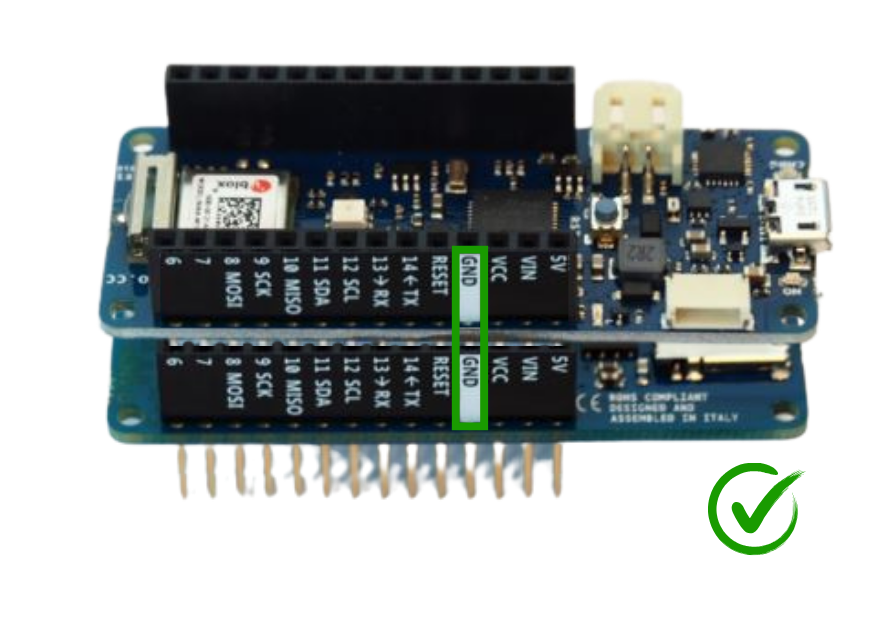 Insérer le câble noir dans le bornier à vis “GND” de la carte Arduino CARRIER, puis le visser.