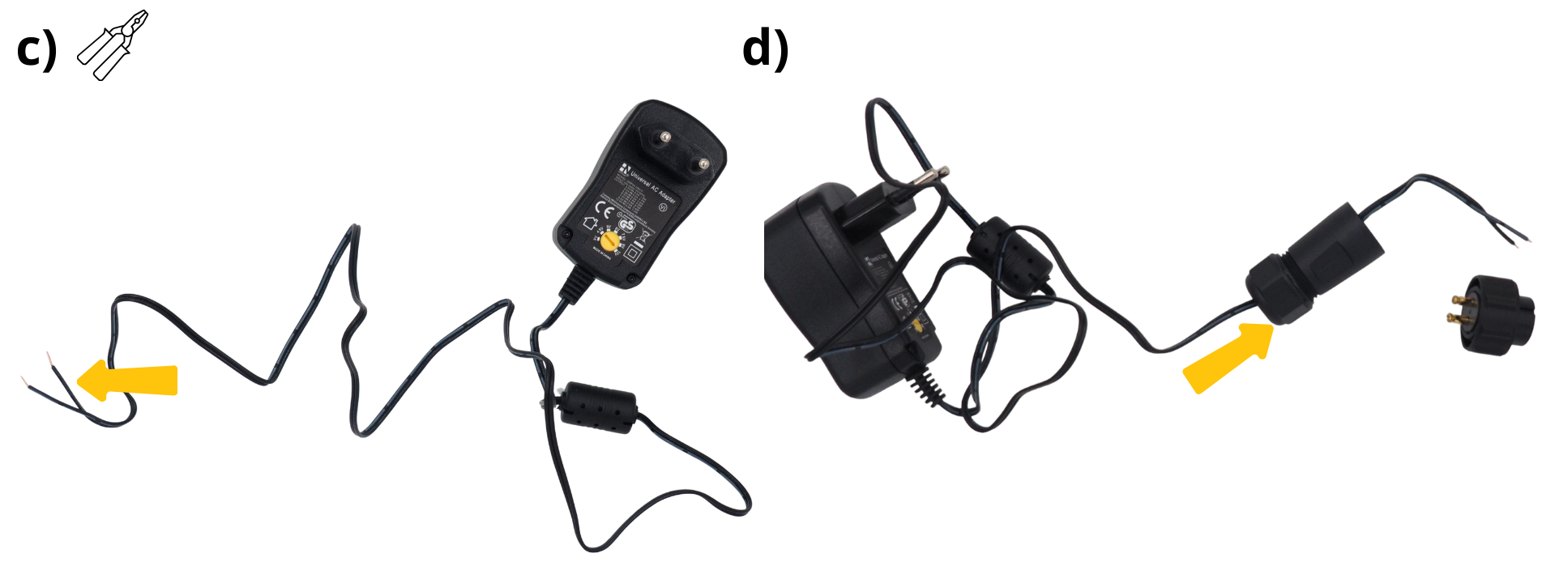 Take the 220 V – 12 V power plug, flip it, and use a screwdriver to set its output to 12 V.