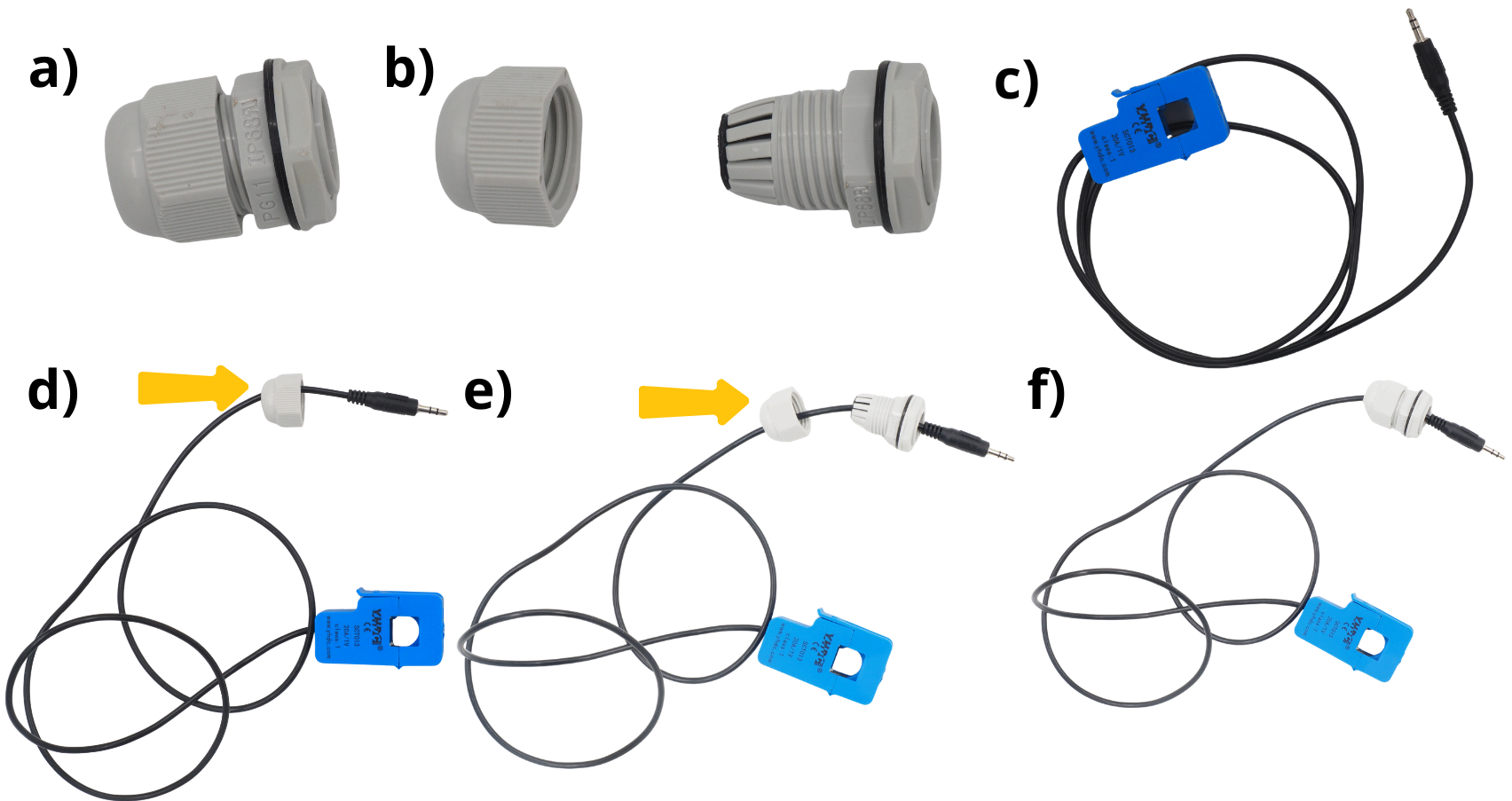 Insérer la prise Jack du capteur dans le second élément du presse-étoupe.