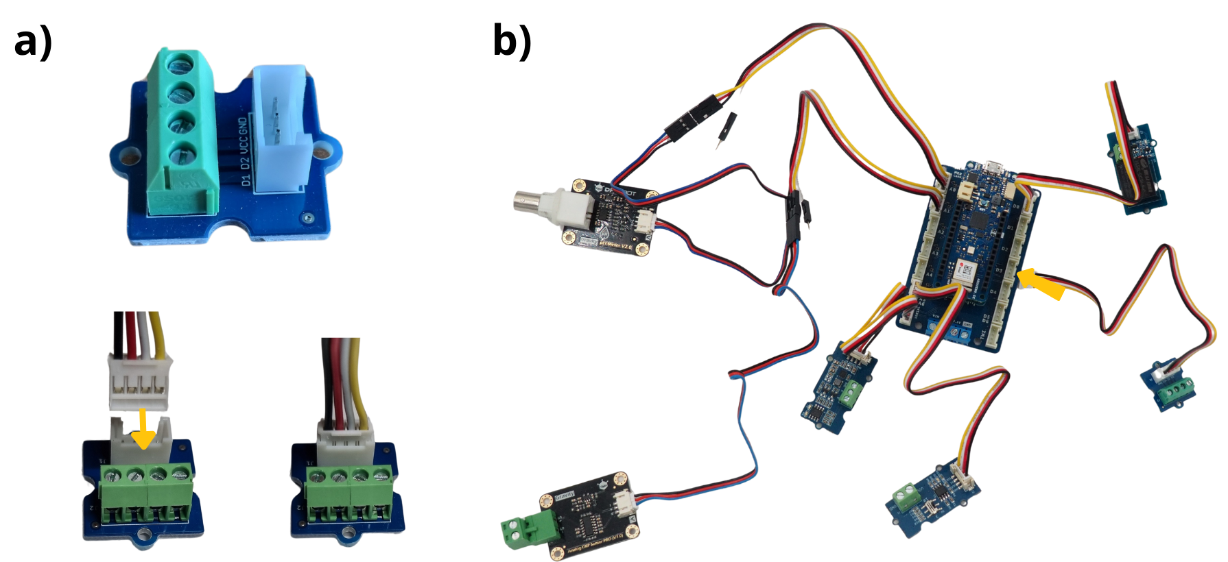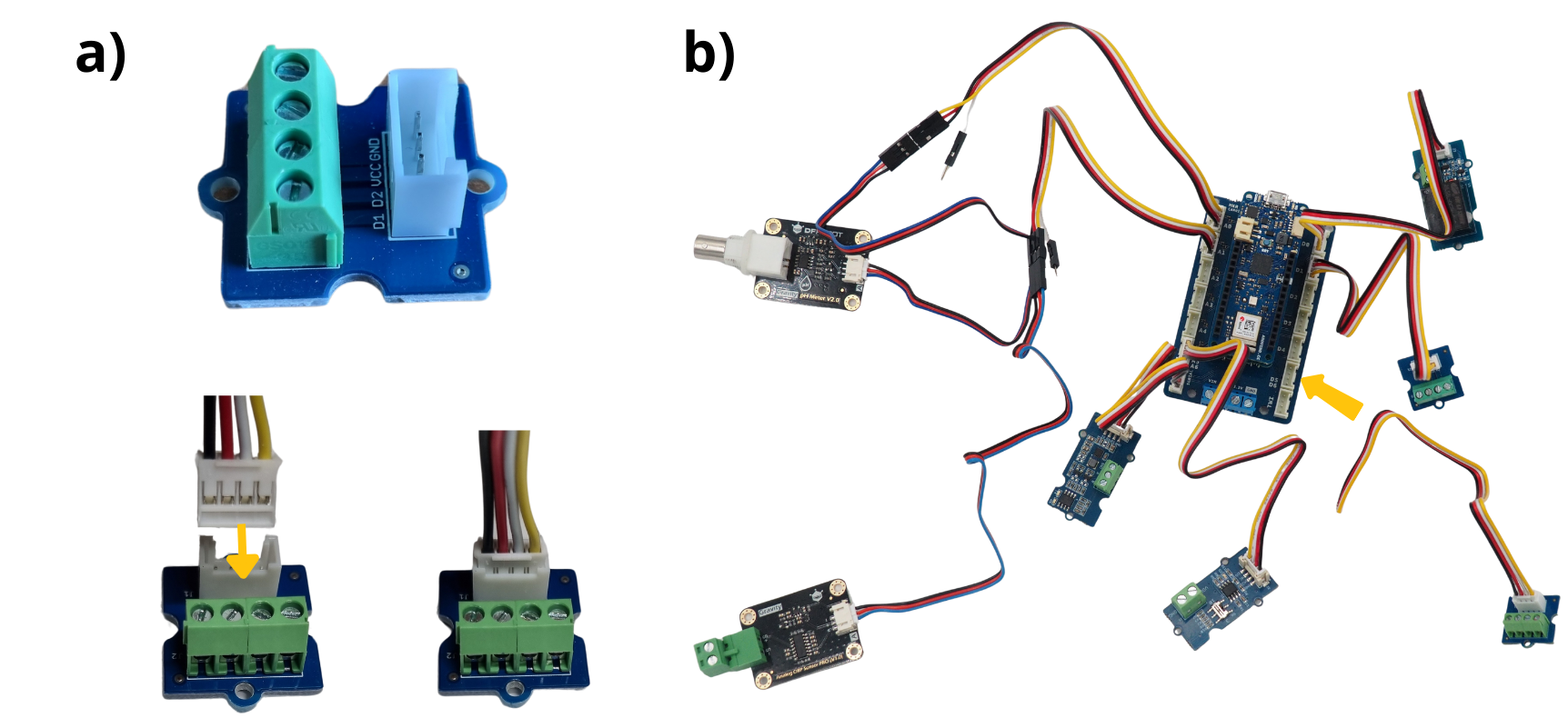 2. Colocación y fijación de las tarjetas Arduino, sensor y Grove#