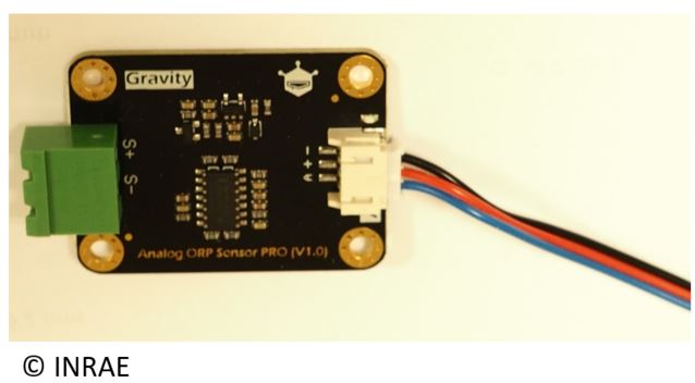Prendre le capteur ORP. Brancher sur sa carte le cable ci-contre. L’autre coté sera connecté plus tard.